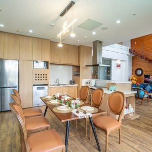 Phòng ốc rộng thoáng, decor tông gỗ tạo cảm giác ấm áp và sang trọng